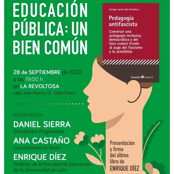 El miércoles, en colaboración con @iu_xixon , presentaremos "Pedagogía antifascista" (@octaedroeditorial ), con su autor Enrique Díez Gutiérrez. Será a partir de las 19:00.