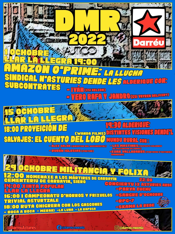 - 29 OCHOBRE. Militancia y folixa col homenaxe a los mártires de Carbayín, xinta popular, trivial asturtzale, ruta chigrera y conciertu IX Asturies Arde.