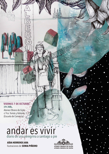 El próximo viernes, 7 de octubre, a las 19H.30', en el local social del Ateneo Obrero de Gijón (2ª Planta de la Escuela de Comercio, Cl Francisco Tomás y Valiente, 1), tendrá lugar la presentación del libro Andar es vivir. Diario de una peregrina a Santiago a pie, de Aída Herreros Ara, con ilustraciones de Sonia Piñeiro.