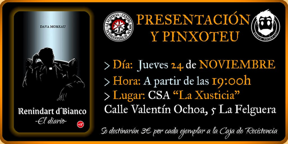 "Renindart d'Bianco.El diario".Presentación y pinxoteo