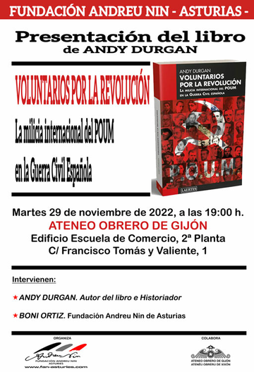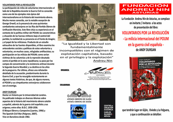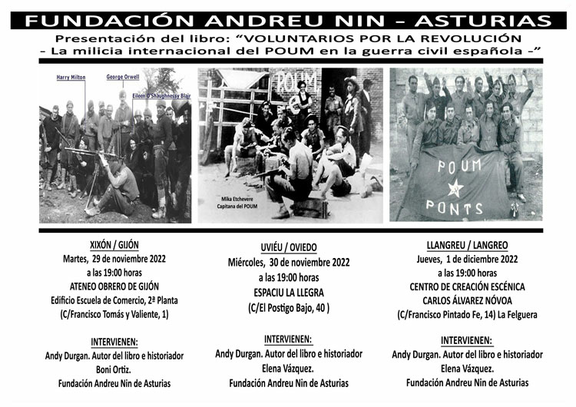 Presentaciones en Asturies del libro de Andy Durgan, "Voluntarios por la Revolución. La milicia internacional del POUM en la guerra civil española".