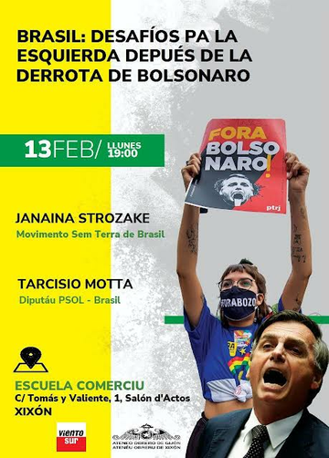 El próximo lunes, día 13 de febrero, a las 19H.00', en el Salón de Actos de la Escuela de Comercio (Cl Francisco Tomás y Valiente, 1) tendrá lugar una charla bajo el título Brasil: desafíos para la izquierda tras la derrota de Bolsonaro,