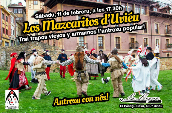Esti sábadu, 11 de febreru, en La Llegra... ¡Armamos l'antroxu popular colos Mazcaritos d'Uviéu!