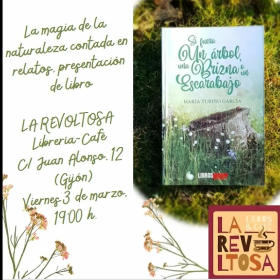 María Turiño estará con nosotras para presentar su libro "Si fuera un árbol, una brizna o un escarabajo". Un maravilloso libro de relatos cuyo eje transversal es la naturaleza y la relación que mantiene el ser humano con ella, tocando la crítica feroz, la magia y la esperanza. Acompañará la presentación de un cuentacuentos recomendado para adultos y para todas las edades, para toda la familia. La entrada es libre hasta completar el aforo.