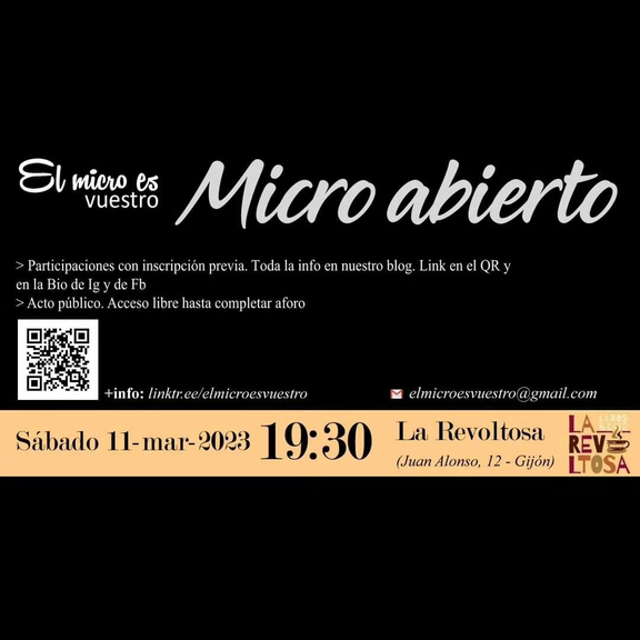 Vuelve el micro abierto a la Revol. De la mano de @elmicroesvuestro , disfrutaremos de la poesía, la música y demás variedades artísticas. Será de tarde, a partir de las 19:30, la entrada es libre hasta completar aforo...