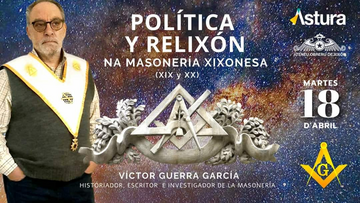 El próximo martes, 18 de abril, a las 19H.00', en el local social del Ateneo Obrero de Gijón (2ª Planta de la Escuela de Comercio, Cl Francisco Tomás y Valiente, 1), se impartirá una conferencia bajo el título Política y Religión en la Masonería Gijonesa, a cargo de Víctor Guerra García.