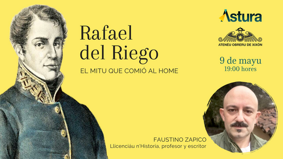 Anunciámosvos la conferencia del historiador, profesor y escritor FAUSTINO ZAPICO que tien fecho investigaciones en dellos campos históricos, pero destaquen ente elles el so llabor sobre les corrientes politiques na Asturies contemporánea. Nesi marcu entamó los trabayos pa la so tesis doctoral sobre federalismu y autonomismu, anguaño bloqueada y nun almitida na Universidá d'Uviéu por tar presentada en llingua asturiana. Nesta ocasión va falanos del militar asturianu Rafael del Riego, referente del lliberalismu, nel 200 aniversariu del so axusticiamientu por Fernando VII.