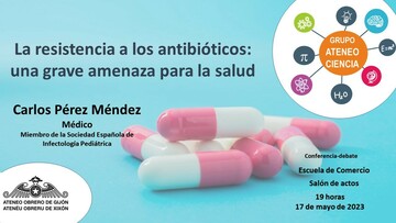 El próximo miércoles, día 17 de mayo, a las 19H.00', en el Salón de Actos de la Escuela de Comercio (Cl Francisco Tomás y Valiente, 1) tendrá lugar una conferencia bajo el título La resistencia a los antibióticos: una grave amenaza para la salud, impartida por Carlos Pérez Méndez.
