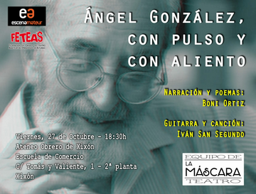 Recital: "Ángel González, con pulso y con aliento". Narración y poemas, Boni Ortiz; guitarra y canciones, Iván San Segundo.