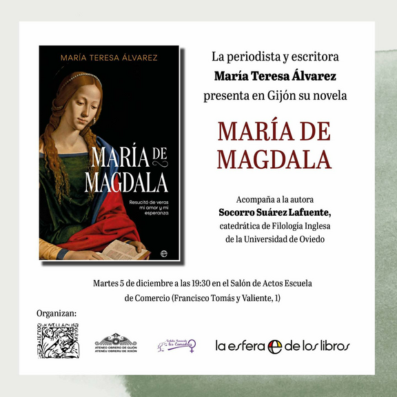 El próximo miércoles, 5 de diciembre, a las 19H.30', en el salón de actos de la Escuela de Comercio (Cl Francisco Tomás y Valiente, 1), tendrá lugar la presentación del libro María de Magdala. Resucitó de veras mi amor y mi esperanza, de María Teresa Álvarez, editado por "La esfera de los libros".