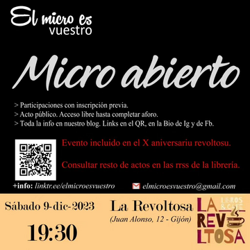 Y para ir cerrando la semana, el sábado nuestro ya habitual micro abierto de @elmicroesvuestro con Mariano al mando y en una edición especial para este aniversariu, no dejeisnde pasaros y disfrutar.