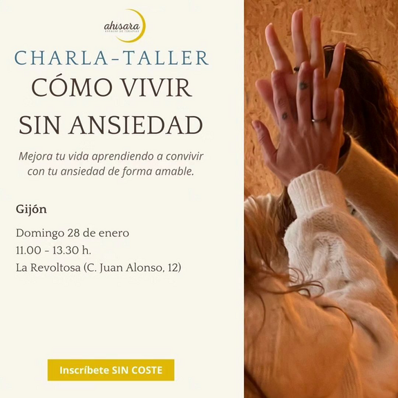 ¡Apunten fecha! Domingo 28 de enero por la mañana, charla taller "Cómo vivir sin ansiedad"