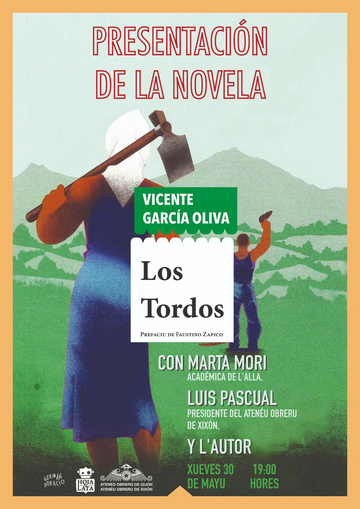 El xueves 30 de mayu, a les 19H.00', nel llocal social del Atenéu Obreru de Xixón (Cai Francisco Tomás y Valiente, 1-2ª Planta), presentarase el llibru Los tordos, de Vicente García Oliva, editáu por Hoja de Lata.