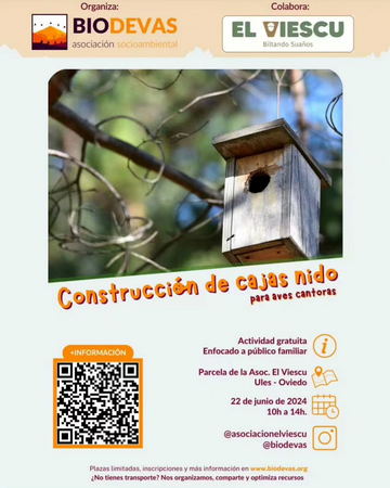 El sábado tenemos un taller en la parcela organizado por @biodevas : Construcción de cajas nido para aves cantoras.