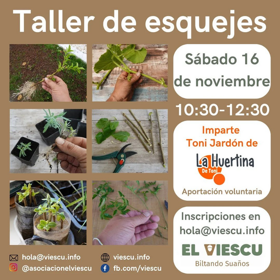 El taller lo impartirá Toni Jardón, el sábado 16 a las 10:30h en la parcela de la asociación. Puedes inscribirte escribiendo a hola@viescu.info con el nombre del taller y de las personas participantes.