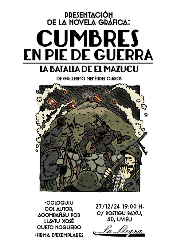 El vienres 27, a les 19h, presentamos "Cumbres en pie de guerra. La batalla de El Mazucu" con Guillermo Menéndez Quirós. Un cómic clave pa conocer la historia de resistencia antifascista nel añu 37 nel oriente del país! ![]()