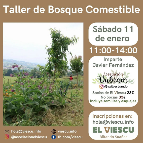 iniciamos los talleres del 2025 con el Taller de Bosque Comestible impartido por Javi de la Asociación Dubram que tendrá lugar este 11 de enero.