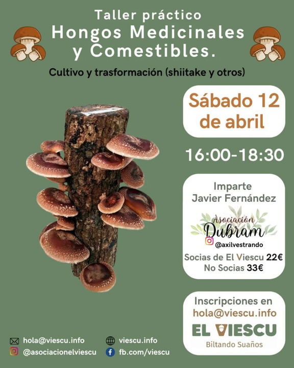 Si te apasiona la naturaleza, la gastronomía y la salud, no puedes perderte este taller práctico sobre hongos medicinales y comestibles. Aprenderás a cultivar tus propios shiitakes y otros hongos en casa, descubriendo su increíble valor nutricional y medicinal. ![]()