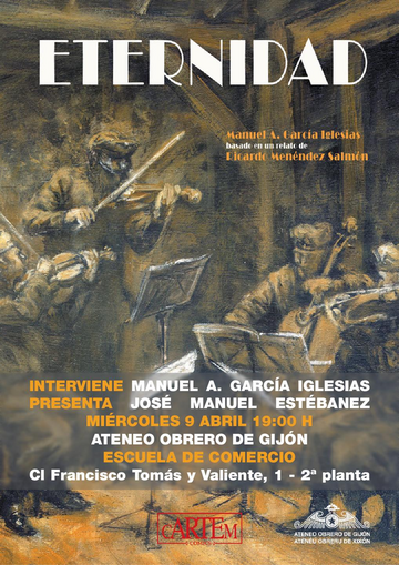 Este miércoles, 9 de abril, a las 19H.00', en local social del Ateneo Obrero de Gijón (2ª Planta de la Escuela de Comercio, Cl Francisco Tomás y Valiente, 1), tendrá lugar la presentación del cómic "Eternidad", de Manuel A. García Iglesias.