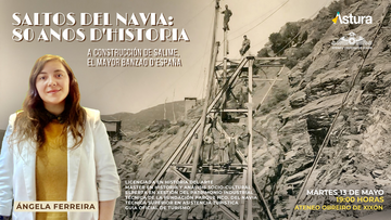 "SALTOS DEL NAVIA: 8O ANOS D'HISTORIA: A CONSTRUCCIÓN DE SALIME, EL MAYOR BANZAO D'ESPAÑA", por Ángela Ferreira Martínez: Licenciada en Historia del Arte na Universidá d'Uvieo, despós Máster en Historia y Análisis Socio-Cultural. É esperta en xestión y uso turístico del patrimonio industrial y minero. Tamén é técnica superior en guía, información y asistencia turística y premio extraodinario de formación profesional. Membro da Fundación Belenos, leva casi oito anos trabayando na Fundación Parque Histórico del Navia.