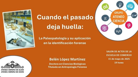 El próximo jueves, día 15 de mayo, a las 19H.00', en el Salón de Actos de la Escuela de Comercio (Cl Francisco Tomás y Valiente, 1) tendrá lugar una conferencia bajo el título Cuando el pasado deja huella: la Paleopatología y su aplicación en la identificación forense.