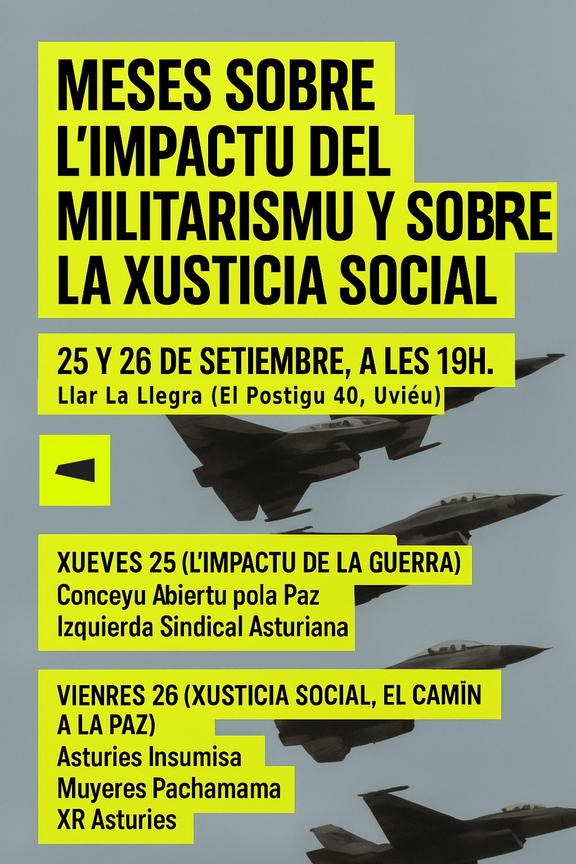 El xueves 25, vamos falar con Conceyu Abiertu pola Paz y Izquierda Sindical Asturiana sobre l'impactu de la guerra y el militarismu na nuestra realidá social, económica y política.