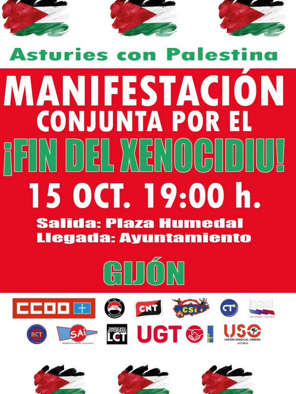 Manifestación conjunta por el ¡Fin del Xenocidiu!Asturies con Palestina