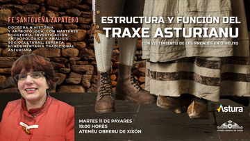 "ESTRUCTURA Y FUNCIÓN DEL TRAXE ASTURIANU (con vistimientu de les prendes en direuto)" con la doctora n'Historia y antropóloga FE SANTOVEÑA, autora de numberosos estudios sobre la indumentaria tradicional asturiana.