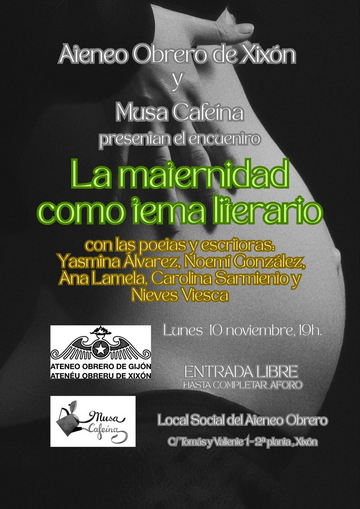 El próximo lunes 10 de noviembre, a las 19H.00', en nuestro local social (Cl Francisco Tomás y Valiente, 1 - 2ª Planta), tendrá lugar un encuentro literario bajo el título La maternidad como tema literario, organizado por el Ateneo Obrero de Gijón en colaboración con el colectivo Musa Cafeína.