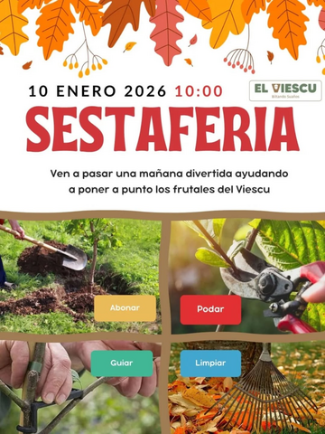 Empezamos el año con una Sestaferia colectiva para la que no hace falta inscribirse. Será el sábado 10 por la mañana. Si no has estado nunca en la parcela, escríbenos a hola@viescu.exinfo, puede ser un buen momento para conocer la asociación.