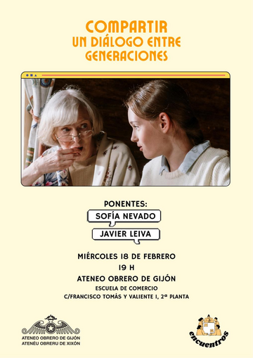 El próximo miércoles 18 de febrero, a las 19:00 h, en local social del Ateneo Obrero de Gijón (2ª Planta de la Escuela de Comercio, Cl Francisco Tomás y Valiente, 1), tendrá lugar un encuentro bajo el título COMPARTIR, un diálogo entre generaciones.