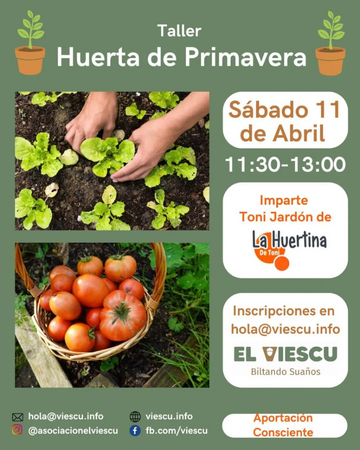 Te invitamos a un nuevo taller en el que aprenderemos a preparar el huerto para la primavera, siguiendo con los anteriores talleres de como hacer un bancal y semilleros , impartido por Toni Jardon ( Huertina de Toni )
