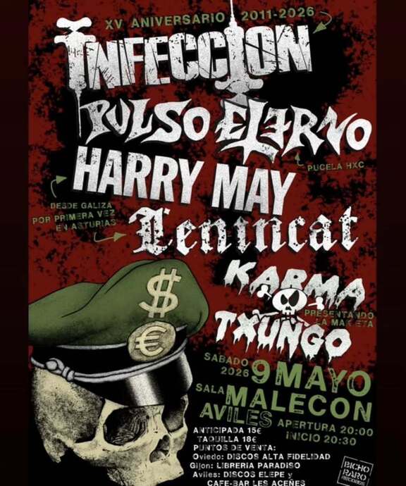 Desde Galicia por primera vez en Asturias estan 2 grupazos!! Nuestros "Hermanos de sangre" los @lenincat.oficial y también @harrymayband presentando "Frenético", de Pucela vienen @_pulsoeterno a reventarlo todo y como guinda al pastel @karma_txungo con su punk de geriátrico presentando LA MAK ETA!! 🙈