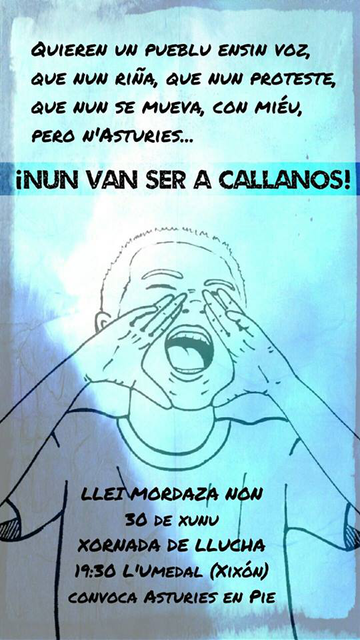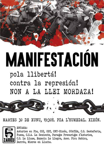 ENTAMA: ASTURIES EN PIE (CSI, CGT, CNT-Xixón, SUATEA, FUSOA, CENTRU SOCIAL AUTOXESTIONÁU LA SEMIENTE, PARA@S Y PRECARI@S D'ASTURIES, CENTRU SOCIAL SESTAFERIA, ASOCIACIÓN PICU RABICU, CENTRU SOCIAL LA LLUME, ESPACIU LA LLEGRA, DARRÉU, MIERES EN LLUCHA).