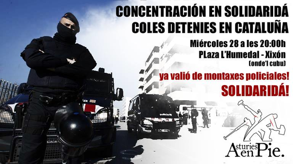 CONCENTRACIÓN en solidaridá col@s 9 deteni@s en Barcelona na tercera fase de la Operación Pandora escontra'l Movimientu Llibertariu.