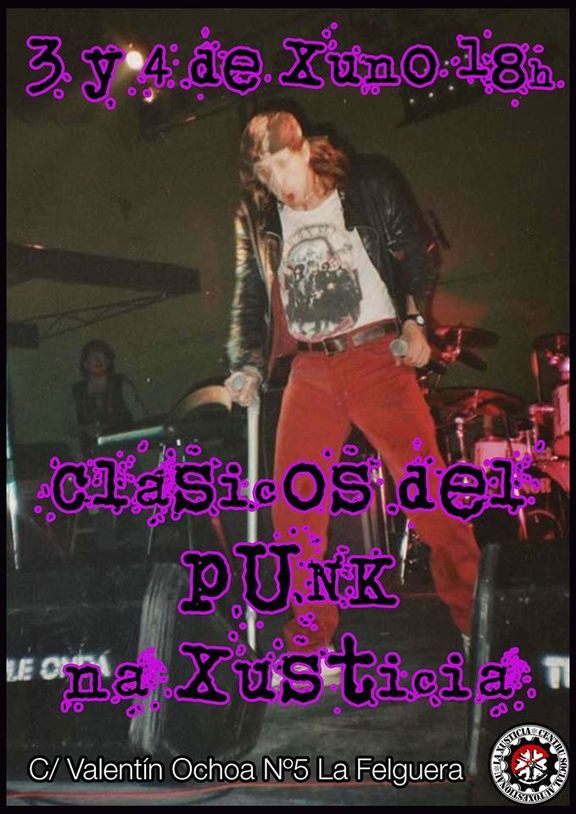 El Vienres y el Sábadu vamos tener abiertu el Centru Social Autoxestionáu La Xusticia dende las 18:00h. Vamos amenizar la tarde con bona música pa dir caleciendo un puquiñin enantes del conciertu de la Felguera onde toquen Gatillazo, Escuela, Discipulos...
