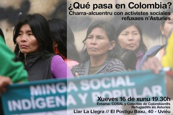 Esta actividá entamada pol Comité de Solidaridá con América Llatina (COSAL) y el Colectivo de Colombian@s Refugiad@s en Asturies va afondar na situación anguaño del país colombianu.
