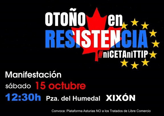 Manifestación dentro de la semana de movilización (8 al 15 de octubre) contra el CETA y el resto de TLC que la UE negocia a nuestras espaldas.