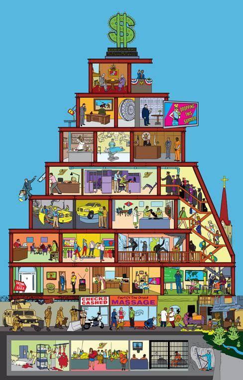 «El capitalismo es un montaje piramidal. El trabajo de los de abajo enriquece a los de arriba. Para permanecer estable, la economía devora recursos sin parar, colonizando nuevos continentes, fuerzas de trabajo, aspectos de la vida cotidiana y regiones de nuestra psique.
