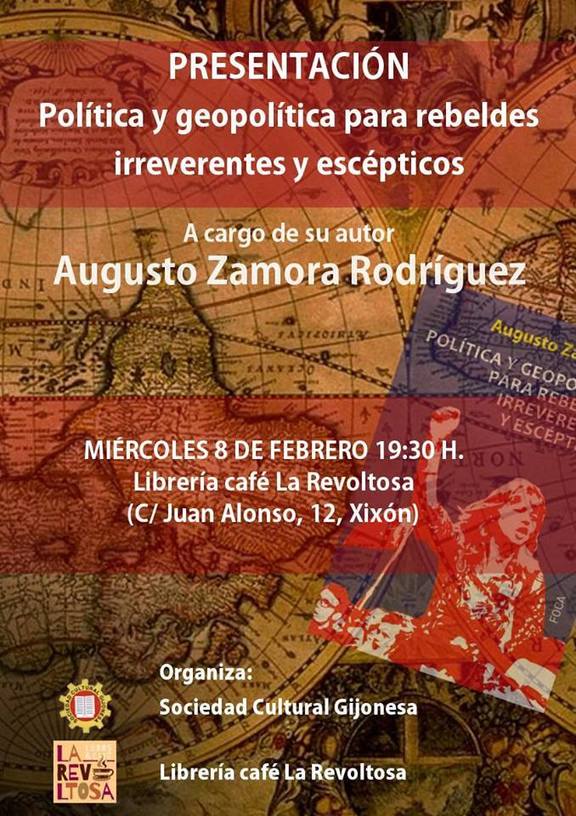 Presentación del libro 'Política y geopolítica para rebeldes, irreverentes y escépticos' con su autor. Augusto Zamora Rodríguez es Profesor de Derecho Internacional y Relaciones Internacionales en la Universidad Autónoma de Madrid. Fue abogado de Nicaragua en el caso contra EEUU ante la Corte Internacional de Justicia. Es miembro de número y directivo de la Academia de Geografía e Historia de Nicaragua.