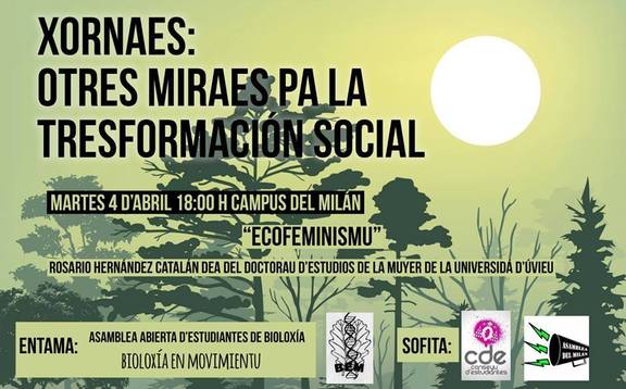 El prósimu Martes 4 d'abril, a les 18:30 (está mal en el cartel) hores nel Campus del Milán, vamos tener a Rosario Hernández Catalán falando sobre Ecofeminismo dende una perspectiva decrecentista.