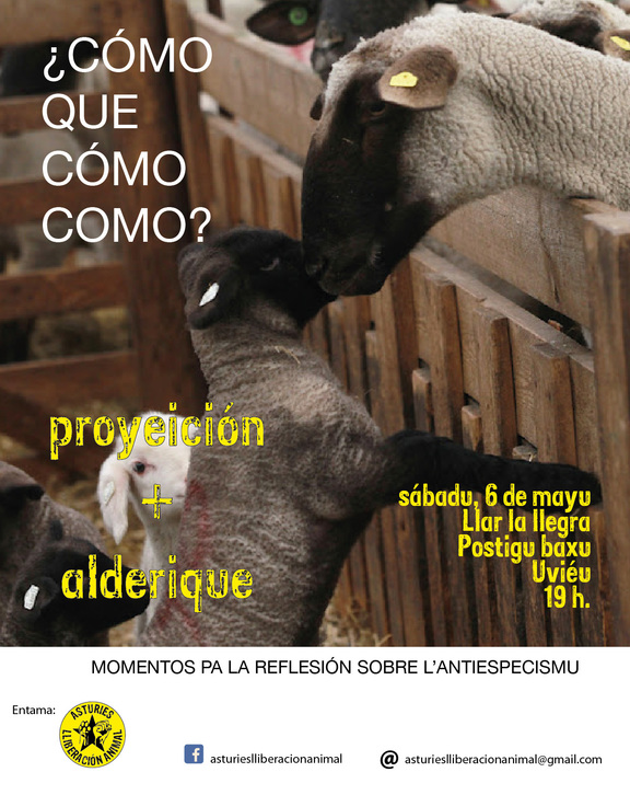 Alderique postreru pa reflesionar ya informar a les interesaes sobre l'antiespecismu, veganismu y en concretu no que se refier a l'alimentación.