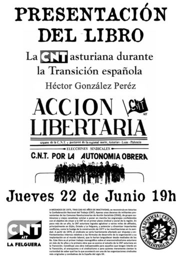 Jueves 22 de Junio a las 19h,presentación del libro "La CNT asturiana durante la Transición española"