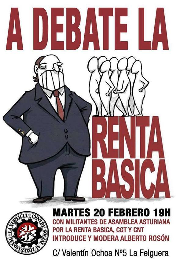 Mesa redonda y debate sobre la renta básica universal, participarán militantes de Asturias por la Renta Básica, CGT y CNT.