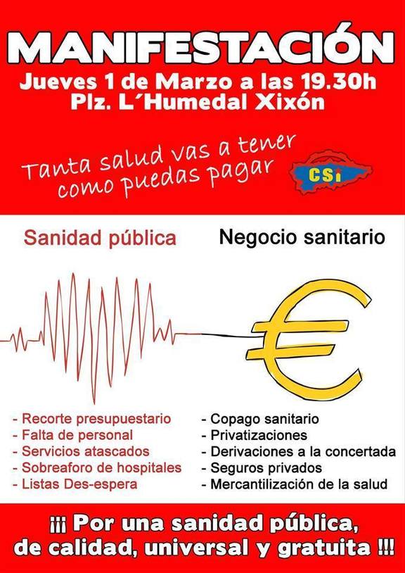 Desde la Corriente Sindical de Izquierda convocan tanto a los trabajadores como a los usuarios del SESPA a manifestarse en defensa de la sanidad pública, por lo que creemos que es un escenario perfecto para continuar nuestra reivindicación de la AMPLIACION DEL SERVICIO DE NEUROPEDIATRIA DEL HUCA.