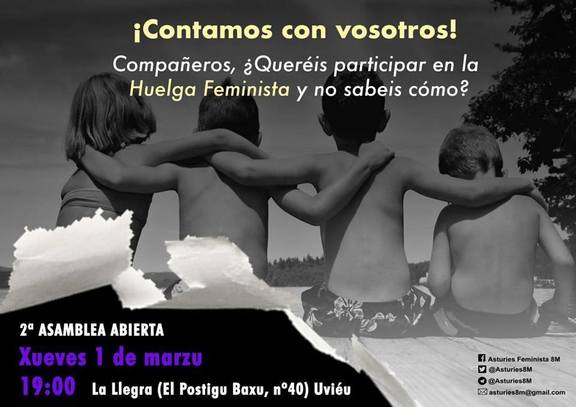 Este jueves segunda asamblea mixta con nuestros compañeros para organizarnos de cara al #8M #HaciaLaHuelgaFeminista. Os esperamos!!