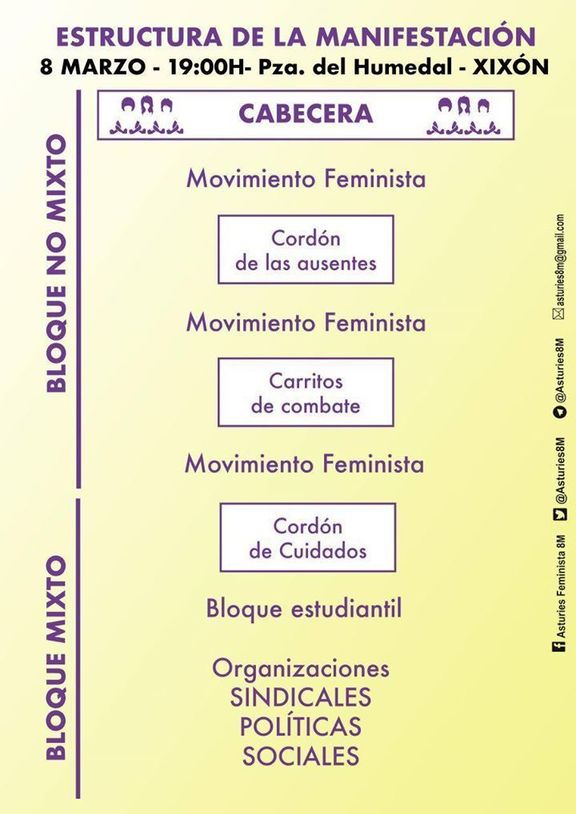 Estructura de la manifestación del 8 de marzo. A las 7 en la plaza del humedal de Xixón, busca tu sitio.