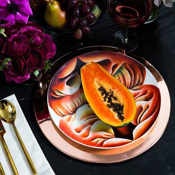 Imagen: Collection of plates based on Judy Chicago's The Dinner Party. Photo courtesy of the Prospect NY.