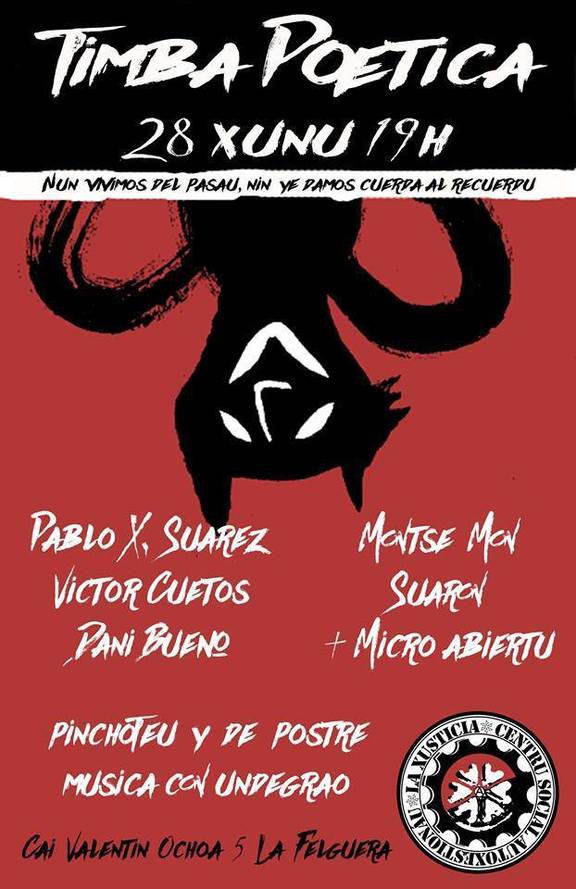 Arranquen les fiestes de La Felguera. Convidamosvos al últimu actu que organizamos antes de parar pol branu. Timba poética, micro abiertu, pinchoteu, música... El xueves averate a La Xusticia!