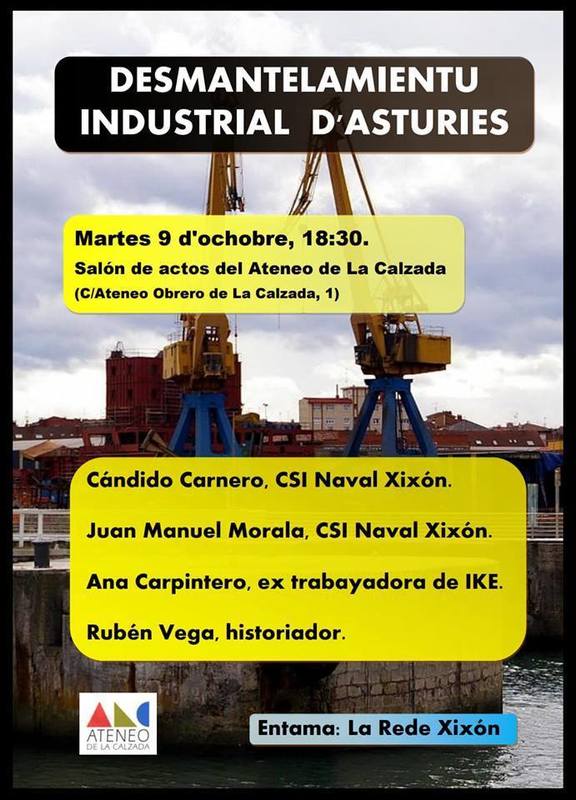 Charla sobre'l cierre de la industria n'Asturies y la non reconversión. Destruyéndose industria y trabayos y ensin nenguna alternativa que la supliera.